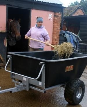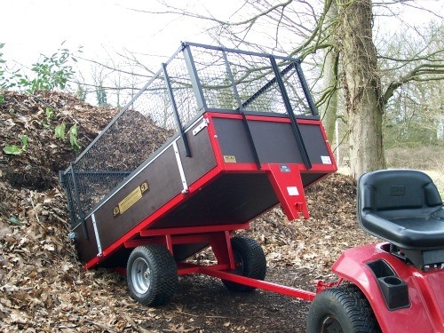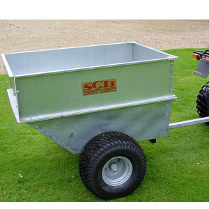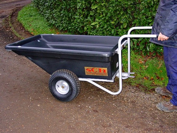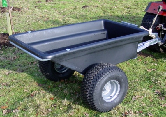 Plastic bodied tipping trailer running on wide profile wheels (20.10 x 8) mounted on ball bearing hubs. These specially mounted wide wheels are a must when operating in soft ...