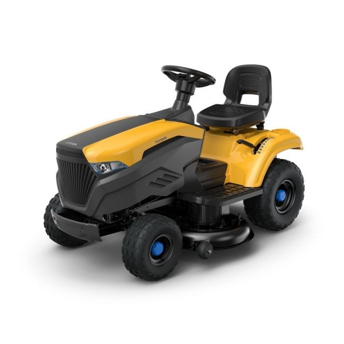 Stiga 7108e Battery Ride On Mower. Mowing large gardens is an enjoyable experience with the STIGA Tornado. The first fully-electric tractor, it puts smooth, quiet, precise per...