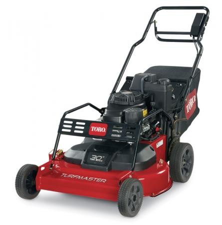Toro Wide-cut rotary mowers capable of cutting a large area with larger decks and grass bags to cut down on time. These machines were some of the first on the market at an affordable price aimed at domestic and commercial markets. The machines are great if you have an area to cut that is just too small for a conventional ride on mower or you fancy the exercise. Get also for larger jobs where access is an issue. Take a look at these machines they won't break the bank. For homeowners with large gardens and busy schedules, Toro’s new TimeMaster™ covers more ground in far less time. The sleek, lightweight body easily circles trees and shrubs. The TimeMaster makes a big impact with a small footprint. Its wide, 76 cm mowing deck lets you handle large areas of grass quickly and easily, reducing mowing time by up to 40%. The Dual-Force cutting system and Toro® Atomic blades cut grass into a super, fine mulch for superior quality of cut and a healthy, rich lawn. The Quick Stow lever allows you to position the handle upright for easy compact storage. It’s equipped with a powerful Briggs & Stratton® OHV engine with the choice of electric start, a durable cast aluminium frame and heavy-duty steel deck, you can count on the TimeMaster to deliver the high performance and unmatched durability that Toro is known for. The TurfMaster just goes one step further with a Kawasaki engine and strengthening for the commercial market.